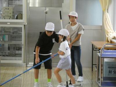 本校では縦割り班でそうじをしています。感心するのは、遊んでいる子どもがいないということです。声がけをしながらきれいにしようとしています。また、1年生にそうじの仕方を丁寧に説明している姿もたくさん見られました。