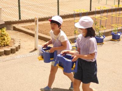 3年生は3時間目に、理科の学習で自分のプランターに植えたホウセンカを観察していました。1・2時間目が運動会練習でしたが、きちんと切り替えて学習していることが、嬉しく感じました。