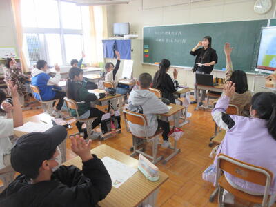 5年生防煙教室(10月14日) 投稿: 校長 (12:15) 今日は、市の健康増進課の方にお出でいただき、5年生向けに防煙教室を開いていただきました。 たばこによる害について、イラストや動画等の資料を用いて、わかりやすく教えてくださいました。 講師の先生の問いかけに答えながら、みんな真剣に学んでいました。 Tweet -