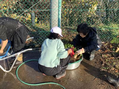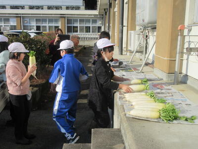 収穫の喜び(11月27日) 投稿: 校長 (11/27) たかだい・さくら・つばさ学級の子どもたちは、自分たちで育ててきた大根の収穫作業を行いました。 1本1本丁寧に畑から抜き、きれいに水洗いしました。 教えてくれた用務員さんに感謝しながら、たくさん収穫できたことをみんなで喜びました。 Tweet -