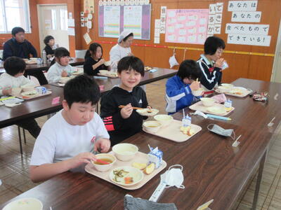地元の食に感謝(11月28日) 投稿: 校長 (13:55) 「山形のおいしいお米を食べて地産地消に関心を持とう!」と、今日の給食はつや姫ご飯でした。 つや姫に合う和食の献立であり、子どもたちはおいしいご飯をモリモリと食べていました。 また、今日は、いただいたりんごがデザートとして出され、ここでも地元のものに感謝しながら、おいしくいただきました。 りんごを提供いただきました、さがえ西村山農協農政対策協議会の皆様、大変ありがとうございました。 Tweet -