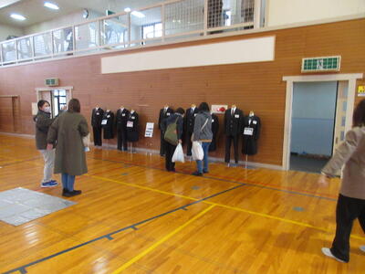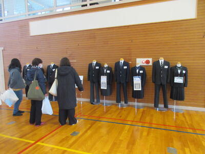 新しい中学校の制服サンプル案の展示(12月12日) 投稿: 校長 (16:44) 新しい中学校の制服サンプル案の展示が、昨日より本校で始まりました。 学習参観日の今日は、多くの保護者の方が足を止めてじっくりと見てくださり、色やデザインの違いなど熱心にお話されながら見てくださった方もおりました。 大変ありがとうございました。 Tweet -