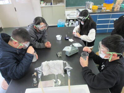 納得いくまで確かめたい!(2月25日) 投稿: 校長 (15:09) 5年生の子どもたちが、塩やミョウバンを水に入れ、何グラムまで溶けるのか実験していました。 ”きっと溶け切るだろう”という予測を立ててか、溶け切らない様子を見ながらも、また、「腕がつらい」と言いながらも、楽しそうに、ひたすらかき混ぜている子もいました。 納得いくまで確かめようと取り組む姿が素敵でした。 Tweet -